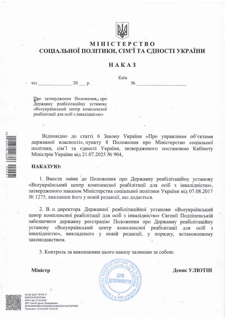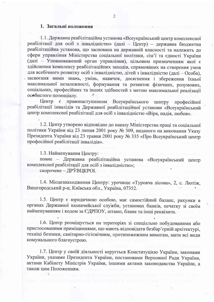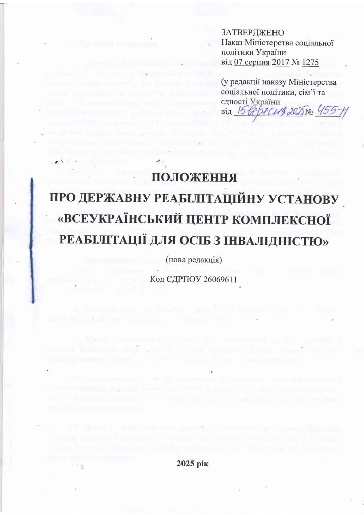 Положення про Державну реабілітаційну установу "Всеукраїнський центр комплексної реабілітації для осіб з інвалідністю" (нова редакція)